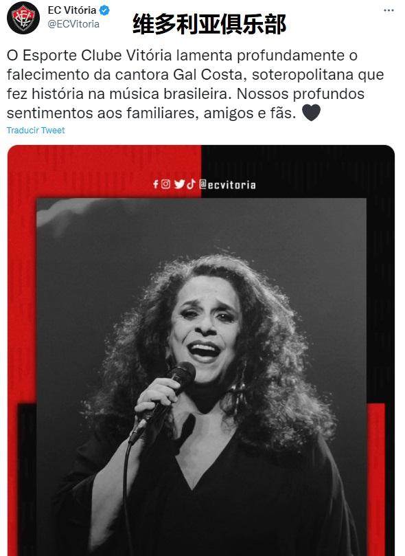 巴伊亚俱乐部写:“带着极度沉重的心情,巴伊亚俱乐部为伟大的本队球迷嘉尔·科斯塔痛哭。巴西音乐史上最伟大的声音之一,她也在2000年出版的专辑中和玛丽亚·贝塔妮娅、卡埃塔诺·维罗索、吉尔伯托·吉尔一起录制巴伊亚队歌,为我们留下一份重要遗产。”